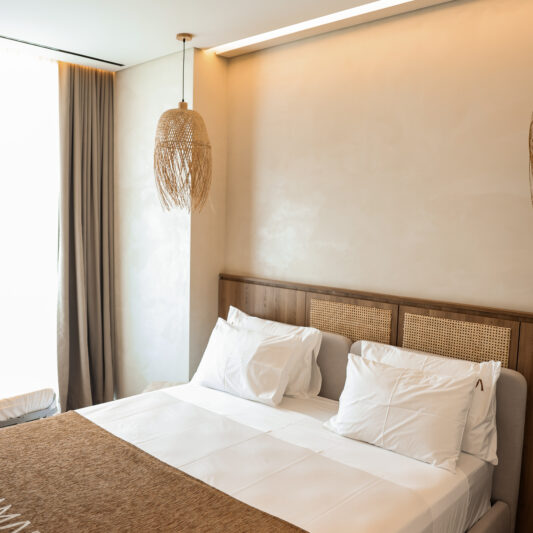 Designed as calm, private spaces, our rooms and suites combine natural tones, soft textures, and modern comfort. Each space is created for effortless relaxation and a seamless stay.